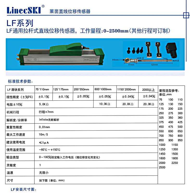 四、LF滑塊式直線位移傳感器的性能參數(shù):