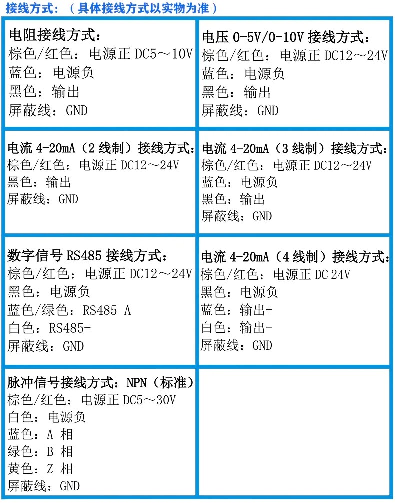 電阻輸出型(電位器):5kΩ,10KΩ,