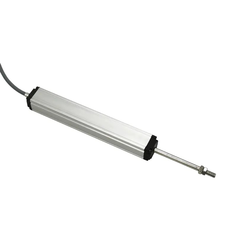 KTC2微型拉桿直線位移傳感器(別名:電子尺,電阻尺,電位器,位移傳感器)原理:電位計原理,所有傳感器為位置測量型,用于調(diào)節(jié)系統(tǒng)(控制系統(tǒng))和測量系統(tǒng)中,對位移和長度進(jìn)行直接測量,輸出直流電壓信號,也可以通過內(nèi)置或者外置的V/A變送模塊講信號轉(zhuǎn)換成標(biāo)準(zhǔn)的0-5V、0-10V或者4-20mA直流信號,也可以遠(yuǎn)距離傳輸控制要求。KTC2微型拉桿直線位移傳感器(別名:電子尺,電阻尺,電位器,位移傳感器)輸出位移變化:0-100%給定輸入工作電壓(隨位移變化而變化)。