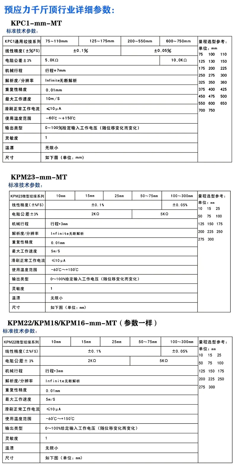 預應力千斤頂專用位移傳感器詳細參數: