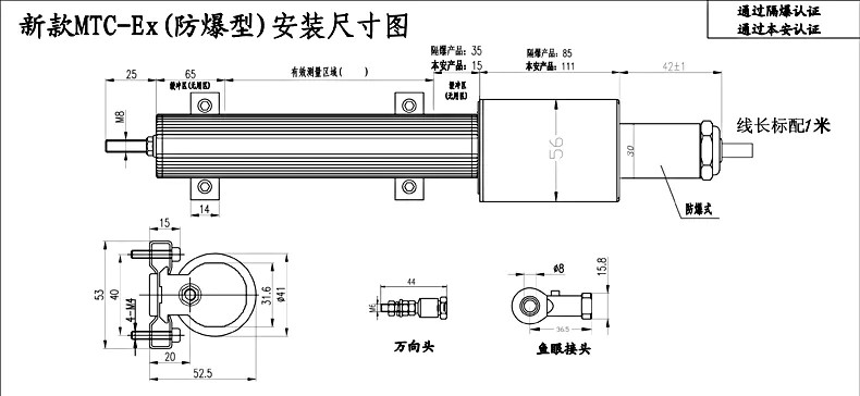 MTC隔爆型磁致伸縮位移傳感器Exdb IIC T6 Gb證書: