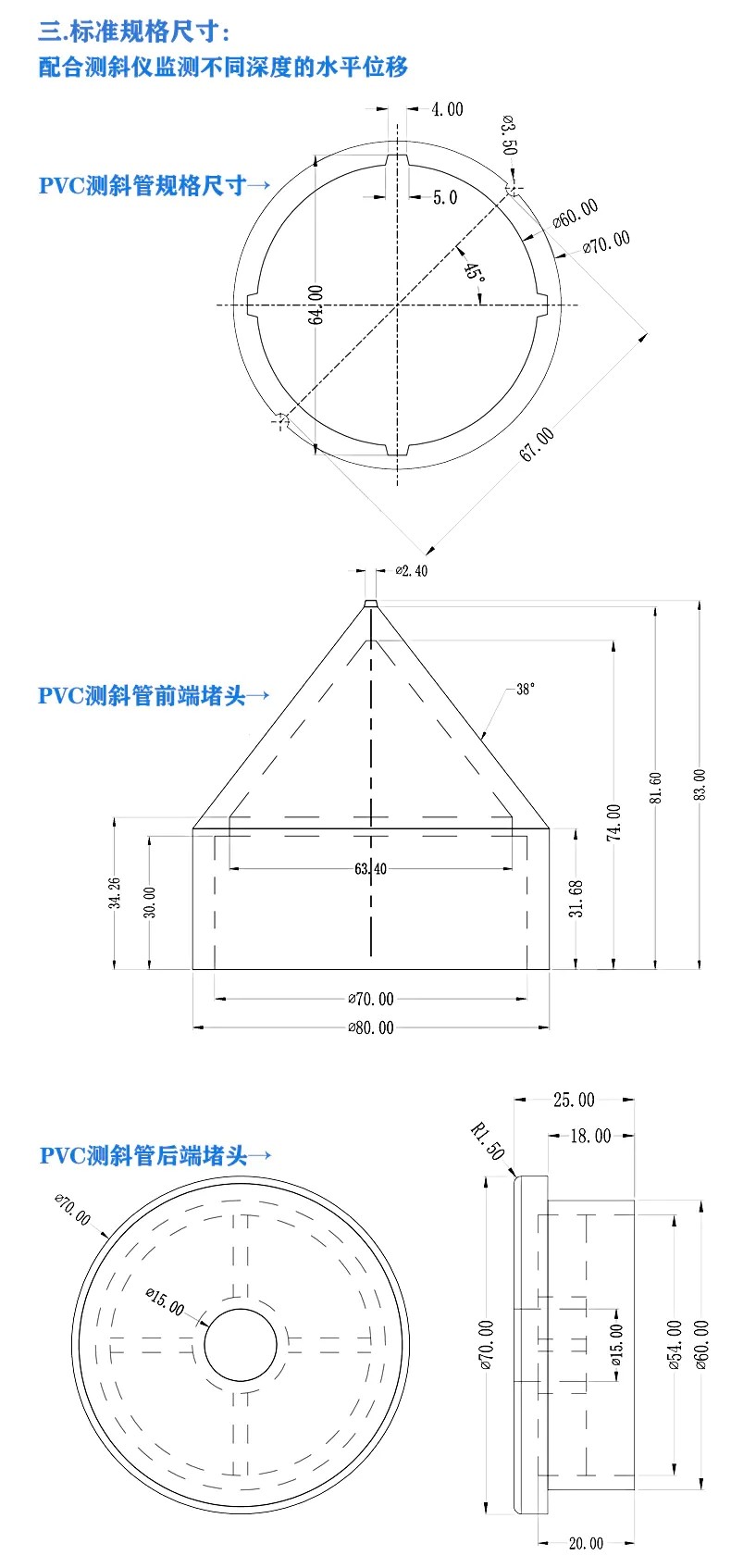 二.PVC測(cè)斜管產(chǎn)品規(guī)格參數(shù):