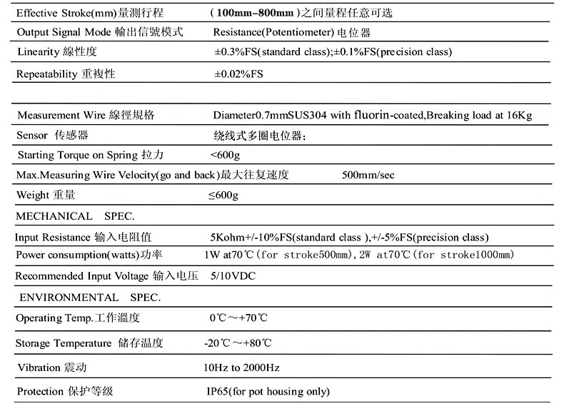 WS-S拉繩式位移傳感器技術(shù)參數(shù):