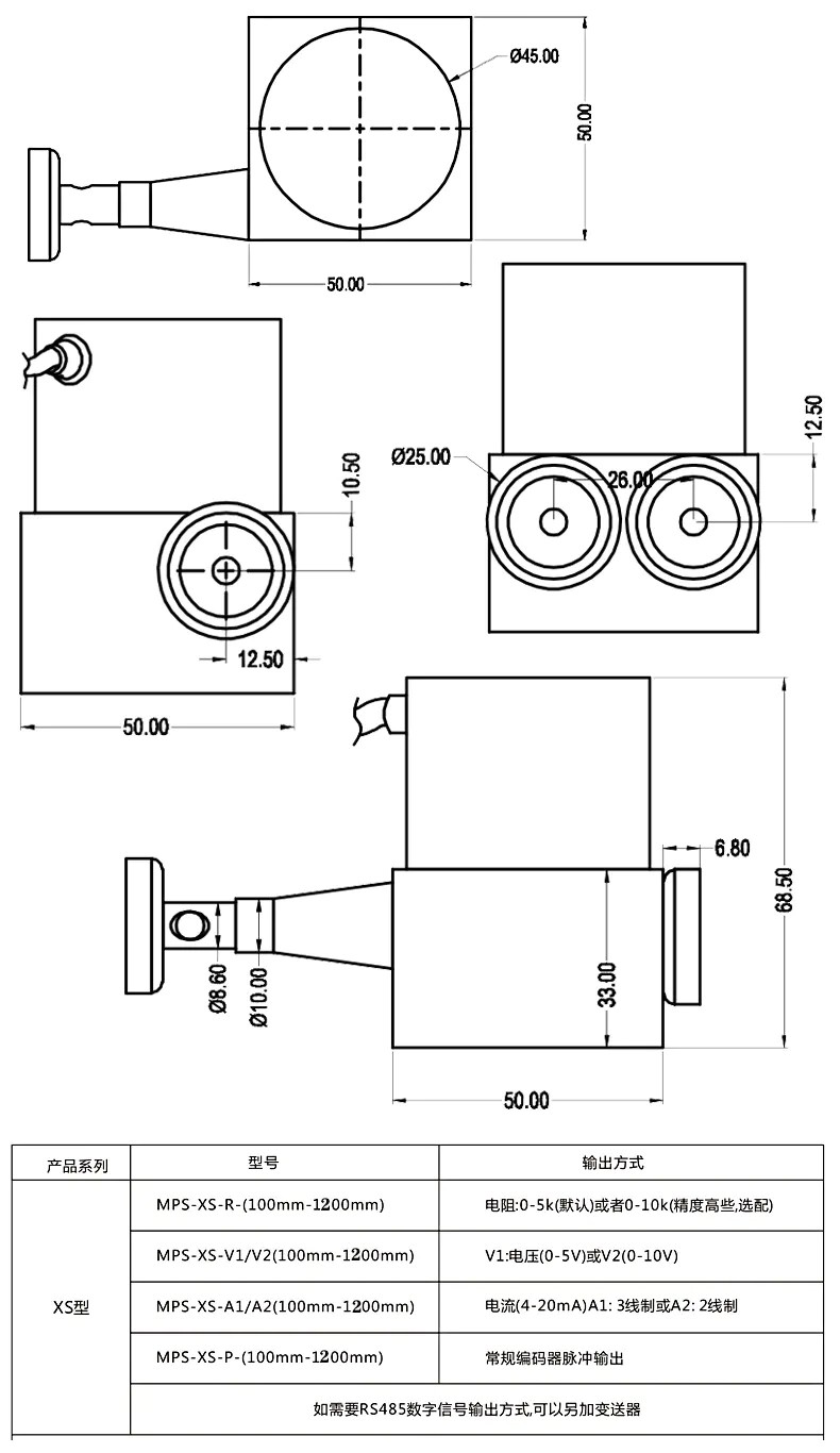 MPS-XS磁吸安裝式拉繩位移傳感器的輸出類型: