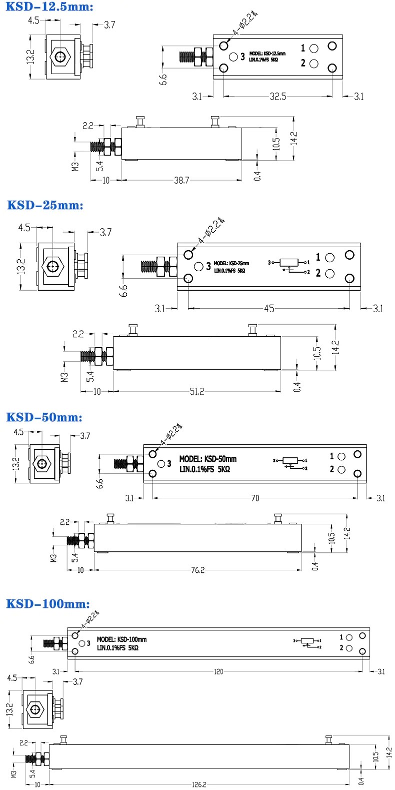 KSD直線電位器/直線位移傳感器13FLP的技術參數: