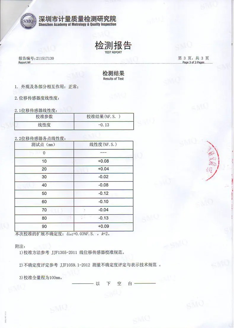七、振弦式表面裂縫計(位移傳感器)檢測報告: