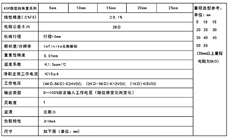 KSP智能閥門專用直線位置傳感器參數(shù):
