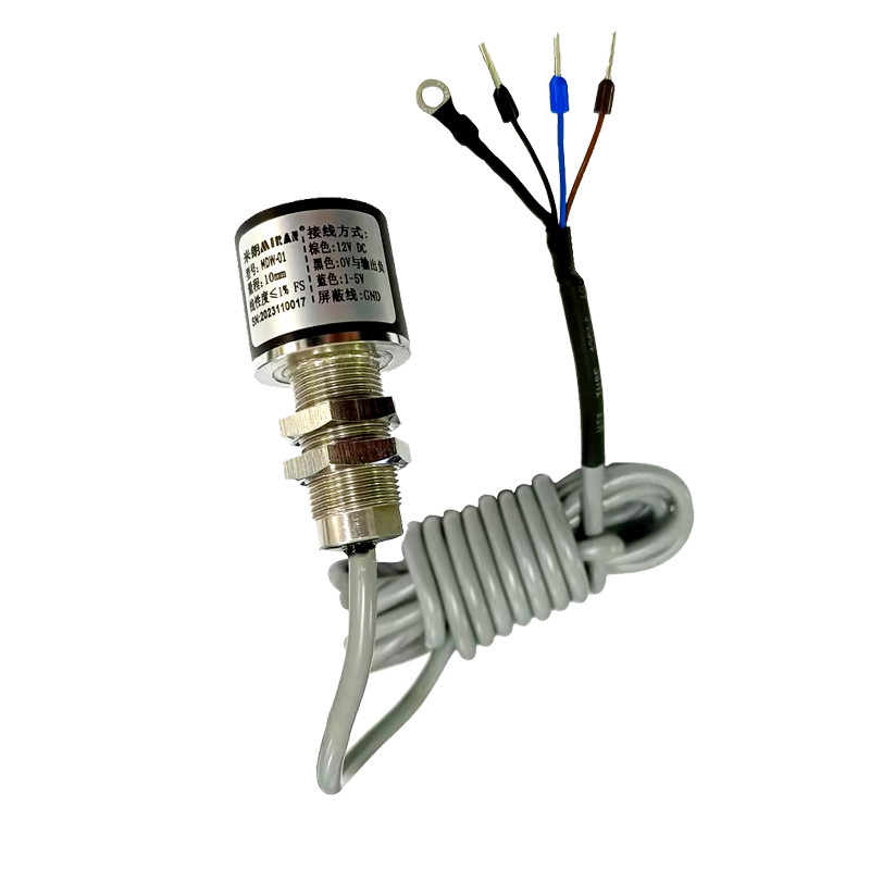MDW-01電渦流傳感器通過測(cè)量金屬被測(cè)體與探頭端的相對(duì)位置、電渦流傳感器感應(yīng)并處理成相應(yīng)的電信號(hào)輸出。