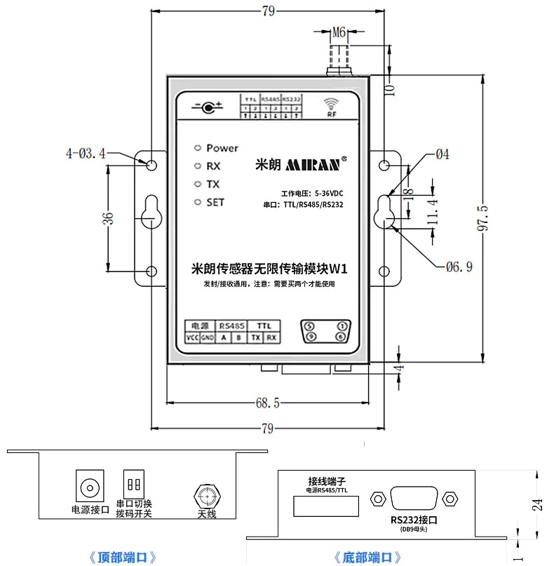 一、米朗傳感器無線傳輸模塊W1/無線數傳電臺概述: