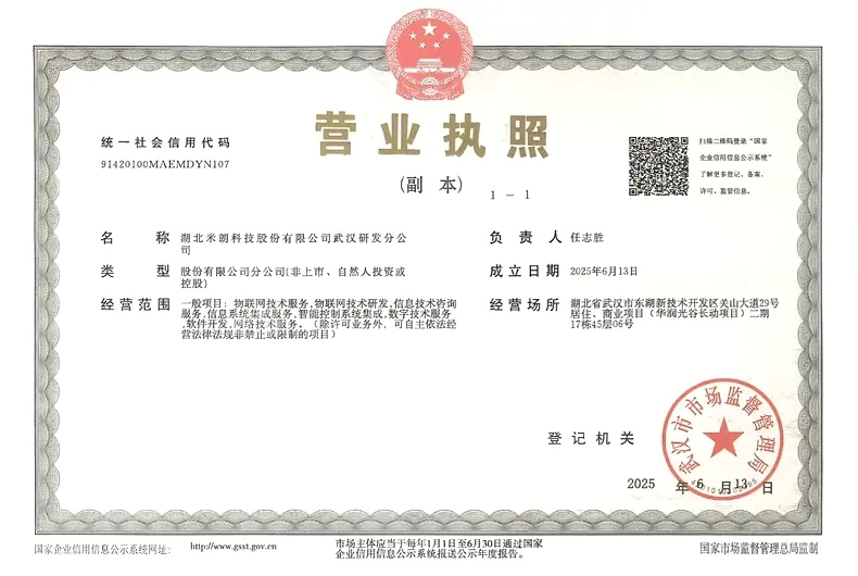 您的位置:主頁  > 榮譽資質  > 湖北米朗武漢研發中心營業執照